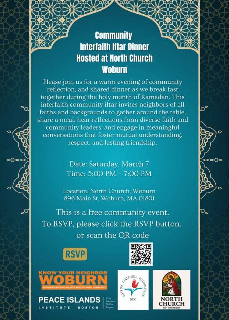 Interfaith Iftar and Mimouna dinner; We are excited to announce that we are planning an interfaith iftar, open to everyone,